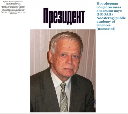 Профессор РГПУ им. Герцена. Президент Ноосферной Общественной Академии Наук